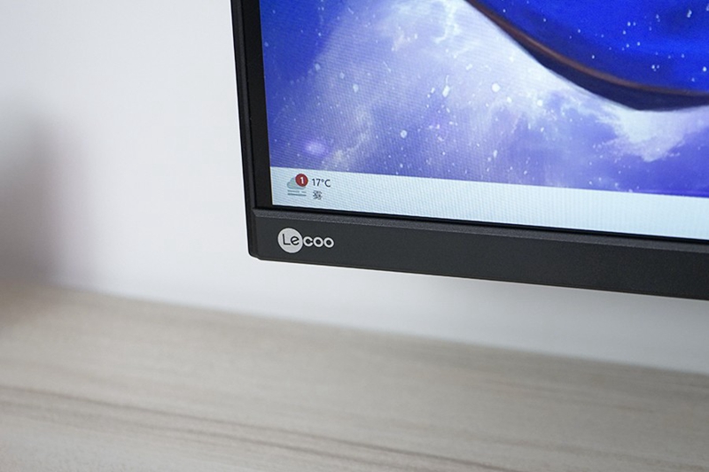 左下角是Lecoo的Logo,非常的简单,但辨识度不错。作为一款电竞显示器,它的正面设计可以说是非常的低调,没有同类产品中那么张扬的设计。
