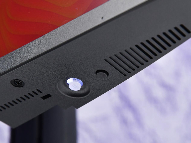 显示器背面没有过多的外观装饰,之间惯用的LOGO居中这次也移到了旁边,为RGB灯环腾出了空间,机身下方有挡板,能够遮盖接口,加强显示器的一体性。