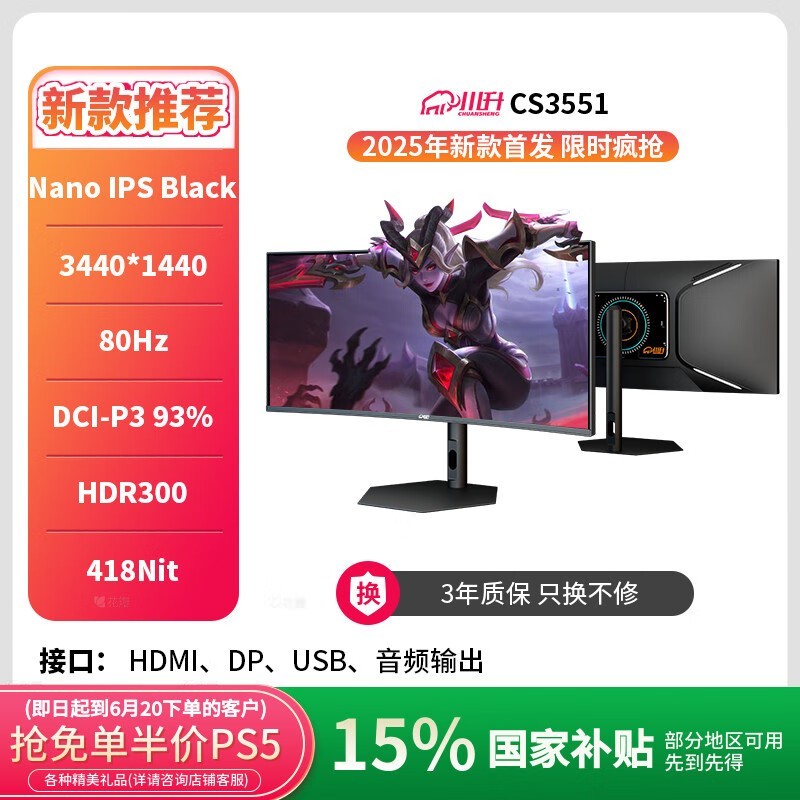 川升 CS3551带鱼屏34英寸准4K144Hz曲面L G面板NANO-IPS电脑显示器32/40副屏幕49 外接显示屏电脑 黑神话悟空25年新款