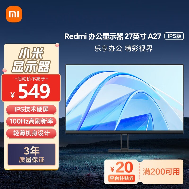 小米 A27 27英寸IPS显示器549元