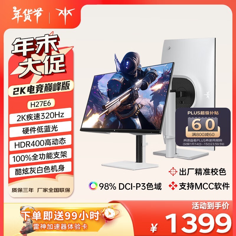KTC H27E6 27英寸2K疾速320Hz硬件低蓝光HDR400 98%P3 FastIPS 1Ms原生300Hz显示屏升降旋转电脑显示器