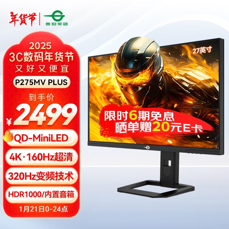 泰坦军团 P275MV PLUS 27英寸 Mini-LED 显示器目前正在京东热销,活动期间每满2989元即可享受500元的优惠。原价为2999元的商品,在活动中可获得实实在在的优惠,最终入手价仅为2499元。