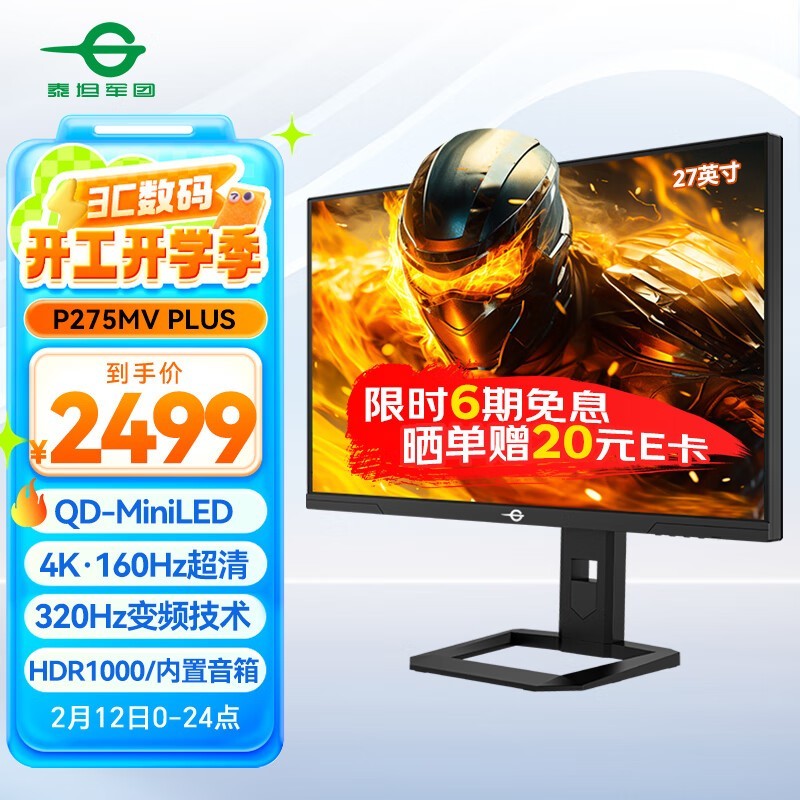 泰坦军团 P275MV PLUS电竞显示器,现在优惠力度巨大!原价2999元,但现在只要2091.41元就能入手!更厉害的是,购买此款显示器还可享受江苏补贴和晒单返现等多重优惠。泰坦军团 P275MV PLUS显示器的性能也非常强大,拥有4K 160Hz可变1080P 320Hz双模,Mini LED背光阵列使画面更加生动鲜活。