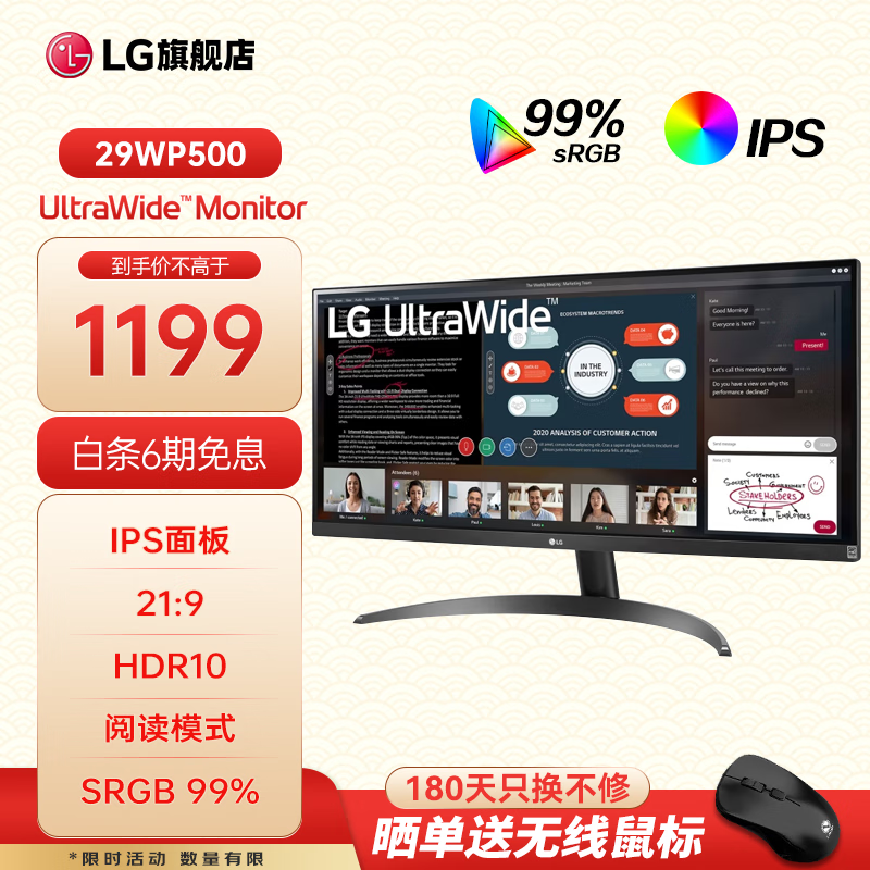 LG 29WP500,29英寸超宽带鱼屏显示器,采用21:9的超宽比例,为您带来沉浸式的视觉体验。LG 29WP500显示器拥有出色的画质表现和宽广的视野,无论是办公多任务处理还是畅玩游戏,都能轻松驾驭。现在京东平台活动价仅需1199元,原价1599元,叠加满减优惠每满1549元减400元,到手价低至1199元,近期好价不容错过,是提升工作效率和娱乐体验的理想选择。