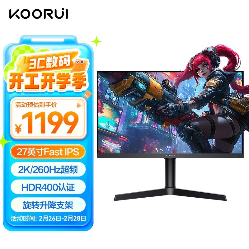 科睿 X71QH PRO是一款27英寸电竞显示器,具备2K高清分辨率和高达260Hz的刷新率,带来极致流畅的游戏体验。科睿 X71QH PRO Fast IPS面板支持1ms响应时间,搭配HDR400和10bit色深,色彩表现更加精准且画面细节丰富。此外,科睿 X71QH PRO显示器还支持高度升降调节,满足不同使用场景需求。现在京东活动价仅需1399元,下单可享受满减及地区立减优惠,最终到手价低至979.21元,是近期非常超值的好价,千万别错过!