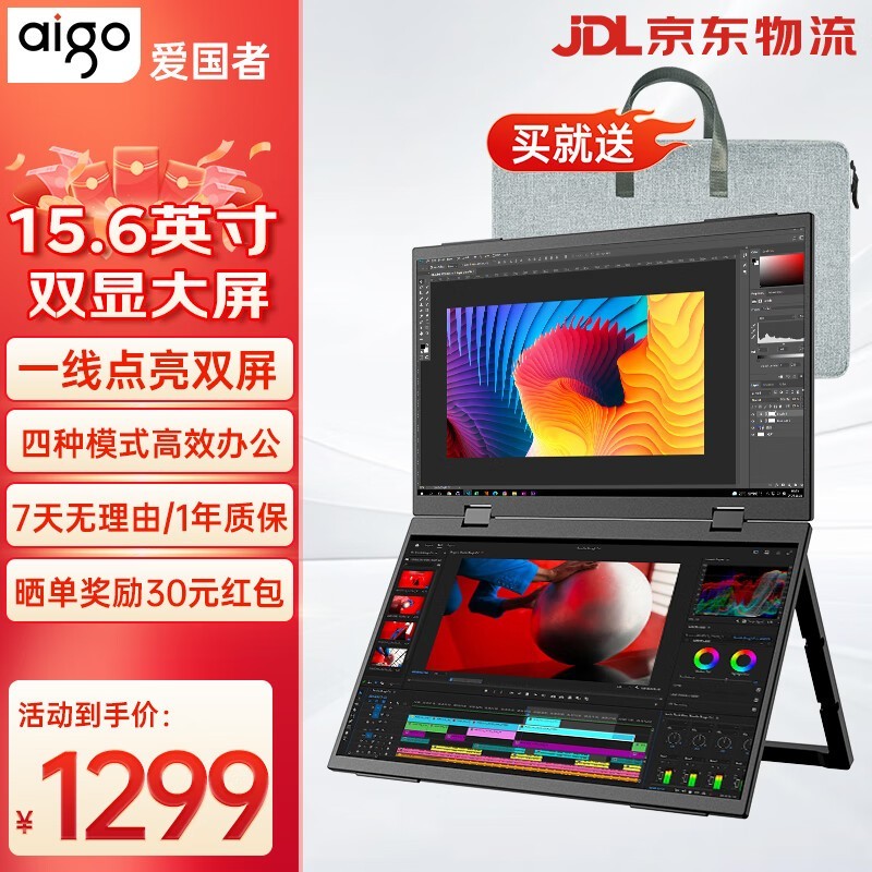 这款显示器在京东的原价为1499元,现在有超值优惠活动。下单可以领取满1199减100元的优惠券,还能参与满1199元减200元的优惠活动,下单1件,实际支付低至1199元。如果您正需要一款便携的双屏显示器,爱国者这款是个不错的选择。