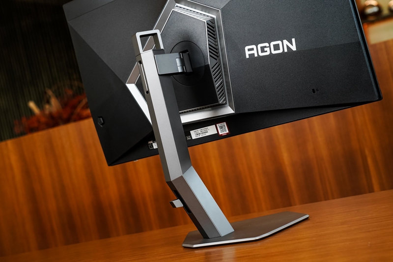 AGON AG276UZD背部面板的设计也极具美学要素,看似不对称的设计实际上给人一种秩序感,中间的五边形埋入RGB炫彩灯条,工作状态下非常炫酷,满足了用户对于个性化的追求。