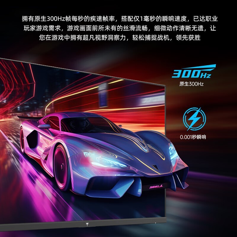 KTC H27E6 27英寸 2K原生300Hz 硬件低蓝光HDR400 98%P3 FastIPS 1Ms 240Hz显示屏升级旋转电脑显示器