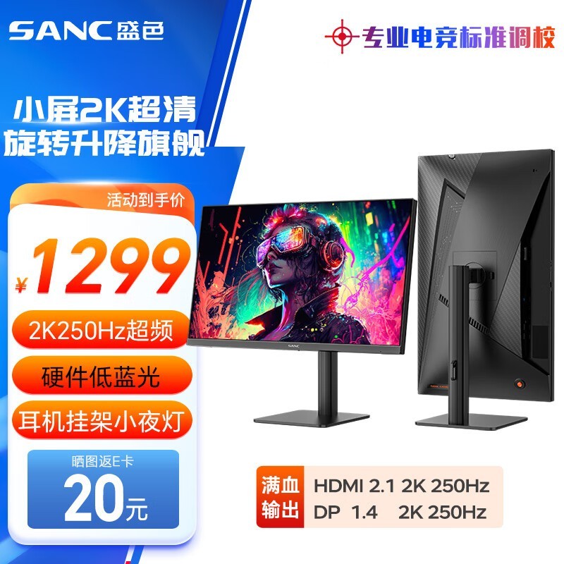 SANC G4Q 盛色24.5英寸2K超频250Hz FastIPS显示器1ms 硬件低蓝光 耳机挂架小夜灯 升降支架电竞电脑屏幕