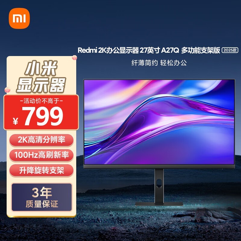 小米 A27Q 27英寸2K显示器 多功能支架版 2025款 IPS技术 100Hz 广色域电脑办公显示器