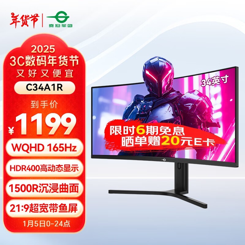 这款泰坦军团 C34A1R显示器具有34英寸带鱼屏设计,拥有165Hz的高刷新率和WQHD广色域显示。泰坦军团 C34A1R采用1500R曲面设计,提供更广阔的视野和更沉浸的游戏体验。此外,泰坦军团 C34A1R显示器还支持旋转升降功能和HDR400技术,方便用户调节使用角度,并且画面清晰度更高。目前泰坦军团 C34A1R正在进行促销活动,原价1399元,加上满200元减20元优惠券和每满1399元减200元的活动,实付只需937.61元。如果你正在寻找一款高性能的电竞显示器,不妨考虑一下泰坦军团 C34A1R。