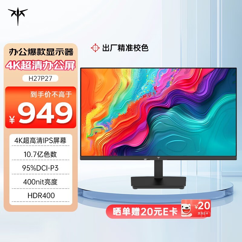 这款KTC H27P27显示器是一款27英寸的IPS显示器,拥有3840×2160的分辨率和60Hz的刷新率。KTC H27P27还支持HDR400技术,能够提供更清晰、细腻的画面效果。该显示器采用的是98%的sRGB色域覆盖,能够提供更加真实的色彩显示效果。另外,KTC H27P27还具有低蓝光功能,可以有效保护眼睛健康。现在购买只需669.20元即可到手,性价比极高,是时候更换你的显示器了!