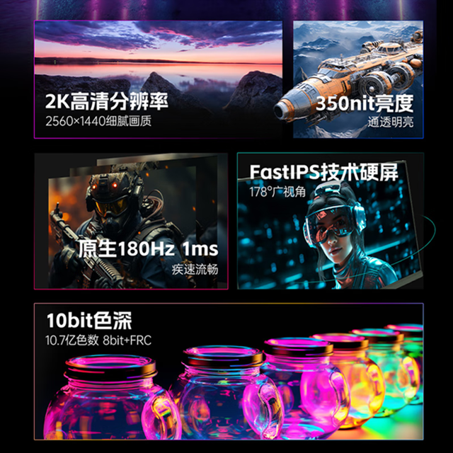 KTC Q24T09 23.8英寸 2K 原生180Hz 350nit FastIPS 快速液晶1Ms 广色域屏幕 低蓝光 游戏电竞电脑显示器