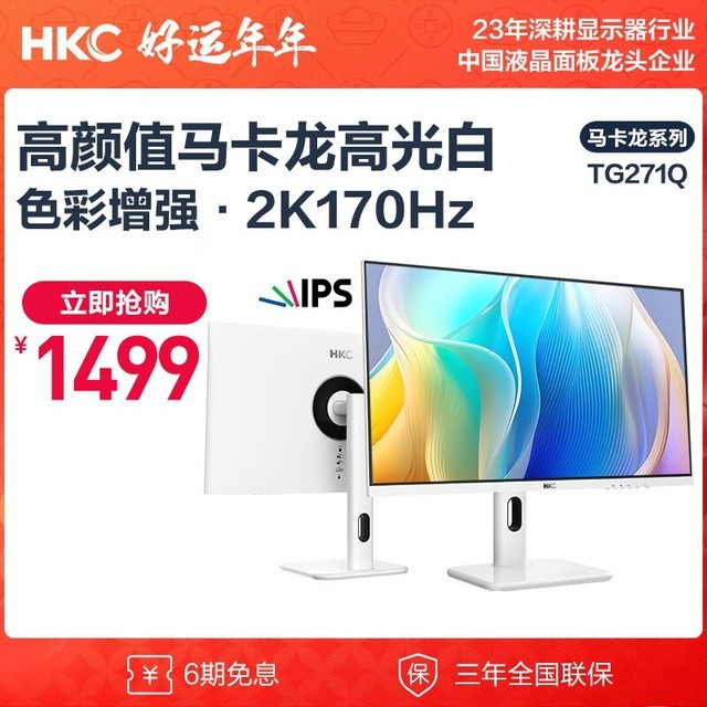 HKC TG271Q 27英寸 IPS G-sync FreeSync 显示器,一种适合消费者购买的显示器,追求高品质的游戏和影视体验。HKC TG271Q显示器采用2560*1440分辨率,支持HDR10,色彩显示细腻生动。另外,它还具有人体工程学设计、窄边框、可升降支架等特点,使用户能够调整到最适合自己的姿势。该显示器还支持170Hz的最高刷新率和1ms的快速响应时间,可提供流畅的游戏画面体验。如今购买此显示器还可享受每满1799元减300元的优惠活动,实际支付仅需1499元,性价比极高。假如你是HKC 有兴趣的TG271Q显示器,不妨考虑一下购买!
