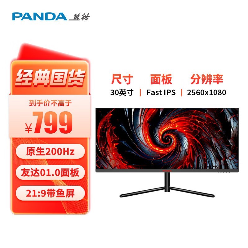 熊猫 B30Q6 30英寸原生200Hz FastIPS 1ms响应时间 WFHD超宽带鱼屏21:9 PIP/PBP分屏 游戏电竞电脑显示器