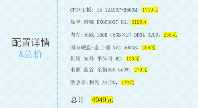 以下,小编整理了一份5000元预算的装机清单,具体配置表如下,有装机需求的朋友可以参考一下。