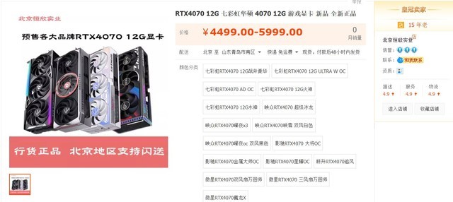 4月13日,英伟达将发布新一代中端显卡RTX4070,并将货物分配到渠道。近日,有网友在淘宝上发现,各大品牌的非公版RTX4070显卡已开始预售,其中最便宜的映众 RTX4070映雪白色显卡价格为4499元,最昂贵的彩虹RTX4070 12G火神显卡价格为5999元。