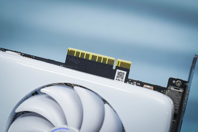 比较有特色的是,因为本次RTX4060采用了PCIe 4.0×8的规格,所以铭瑄 RTX4060 iCraft OC8G 瑷珈X2也采用了一个物理上的PCIe 4.0×8个规格,接口尺寸要比传统的PCIe ×16短一大截,如果你的主板有PCIe × 8的插槽,可以直接装上,兼容性提高了不少。