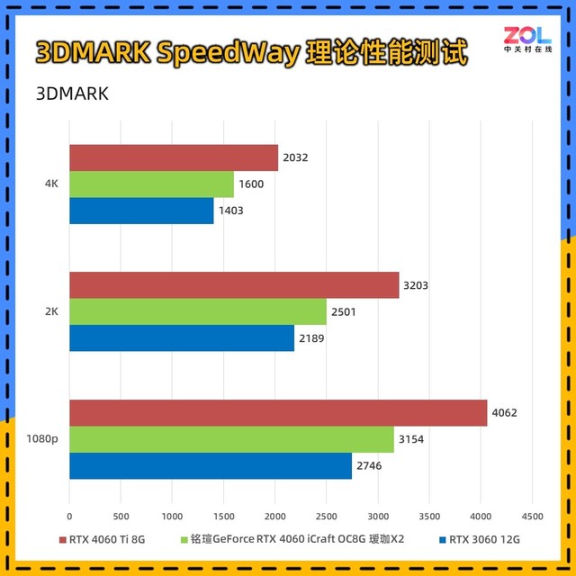 另外1080p分辨率中,RTX4060与RTX4060 Ti的分数相差不大,这是因为该分辨率下主要瓶颈在于CPU。