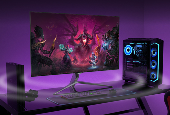 这款4K显示器的尺寸来到31.5寸,采用宏碁独家Agile-SplendorIPS快速液晶面板,拥有144Hz原生刷新率与1ms灰阶响应,依然是4K屏中出色的电竞水平。支持AdaptiveSync自适应同步技术实现刷新率与帧数同步,减少画面撕裂卡顿现象。画质方面,这款显示器同样通过DisplayHDR400认证,具有一定高动态范围显示性能,标称达到90%DCI-P3色域,原生8bit色深+FRC技术可达到近似10bit色深效果,同时DeltaE小于1,使其具有极其优秀的色准,提升游戏娱乐视觉体验的同时也可作图像处理办公使用。