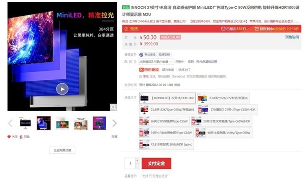 联合创新 27M2U MiniLED专业领域设计显示器,京东已开启预购,预购价3999元。现在参予原订,就可以享用订金50抵550元活动,同时原订用户参予晒单还可返100元京东E卡,现实情况到手价仅3399元。