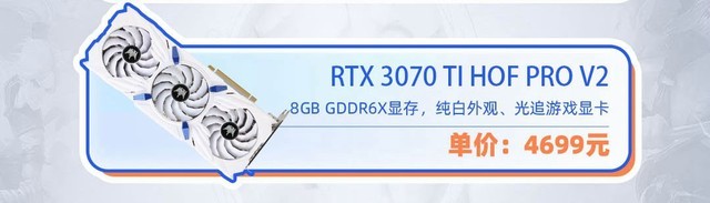 影驰 RTX3070TIHOFPROV2显卡,纯白色外观,天使翅膀,高调优雅;彩色LOGO灯和风扇灯,可以轻松地创造出独特的光污染效果。配合DLSS和RTX技术,8GGDDR6X的超大显存,轻松带来高帧率、低延迟的游戏享受。