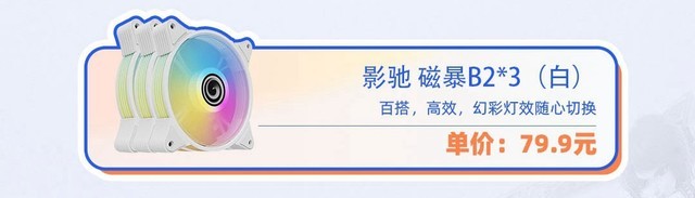影驰 磁暴B1/B2 黑/白色 台式主机电脑机箱散热 定光/ARGB 炫彩风扇 磁暴B2风扇(白)*3
