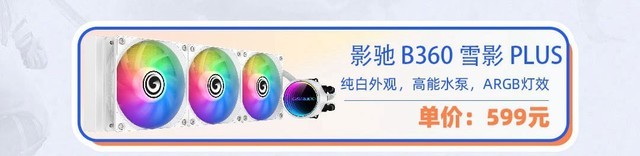 影驰 B360雪影PLUS水冷,为静音而生,为性能保驾护航;多平台安装,高度兼容,可完全覆盖Intel13代CPU及其它INTEL平台,纯铜底座覆盖精确,无缝贴合,配合专用高压风扇,散热能力强;整体还配有RGB幻灯效果,视觉体验非同一般。