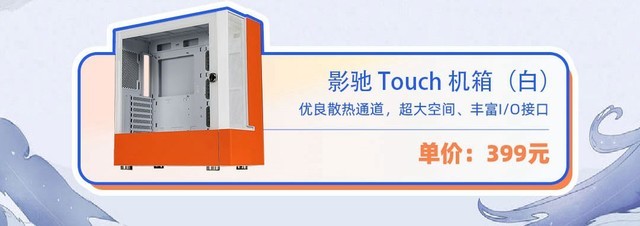 影驰Touch底盘,宽体设计,兼容无压力;底盘预留多个散热孔,可以构建DC风道,轻松应对高发热硬件;预设6个风扇位置,最大支持360冷排,同时支持显卡竖插,配备独立电源仓,无压力走线;还有防爆包边钢化玻璃,完美展现了底盘内部的华丽景色。