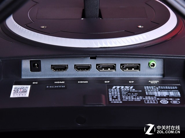 显示器配备了2个HDMI 2.0接口、两个DP1.2接口和一个音频输出接口,从接口上来讲还是比较丰富的,可以适配多种外接设备,满足玩家多种连接的需求。