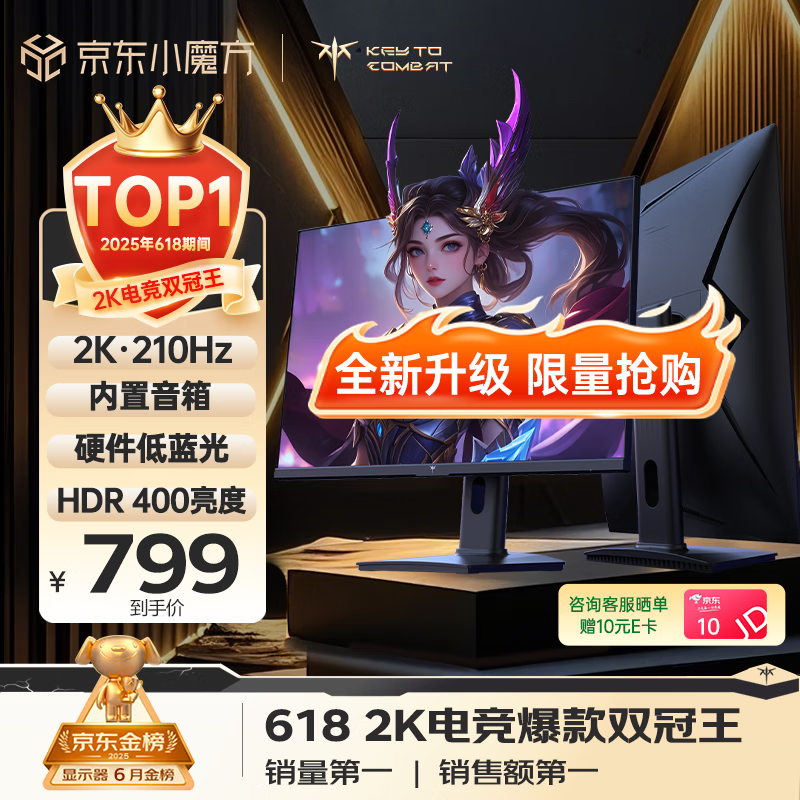 KTC H27T22S-3 27英寸2K 210Hz FastIPS电竞电脑显示器 旋转升降 音箱 10Bit高亮护眼 国家补贴 显示屏