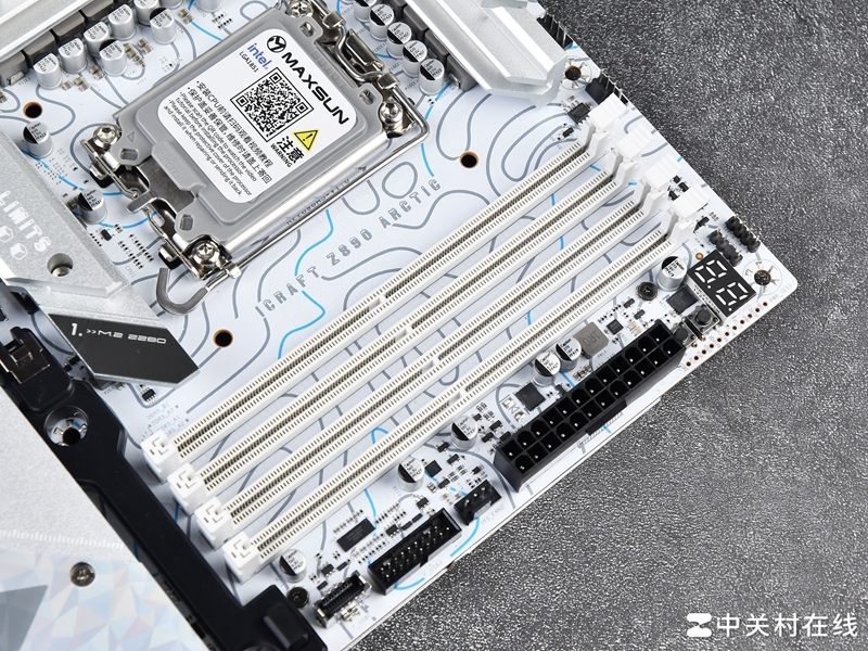 内存方面,铭瑄瑄 Z890 Arctic主板拥有4根白色DDR5内存插槽,最大容量256GB,支持DDR5 8800MT/s内存,尤其是搭配CUDIMM类型内存时,更容易突破频率上限。