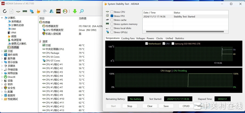 在机极限性能250W模式我们也进行了拷机测试,看看铭瑄瑄 Z890 Arctic主板的抗压能力。