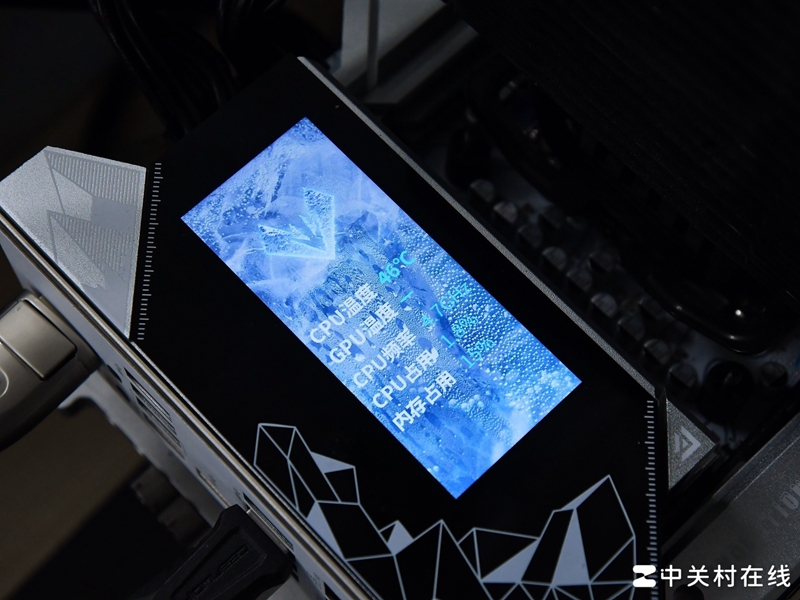 VRM散热装甲不仅拥有一块3.4英寸锐影屏,本身是两块超大金属散热片组成,由一根导热管相连,导热效率很高,还配备导热垫快速传导MOS热量。