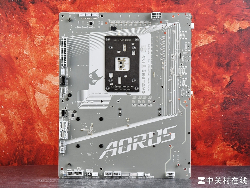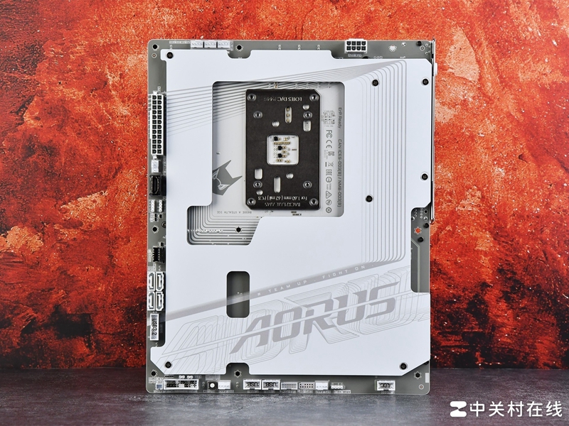 技嘉 B650E 冰雕背插版主板除了接口接针,还在背部额外提供一个金属背板,可有效保护PCB,不易出现歪曲变形。