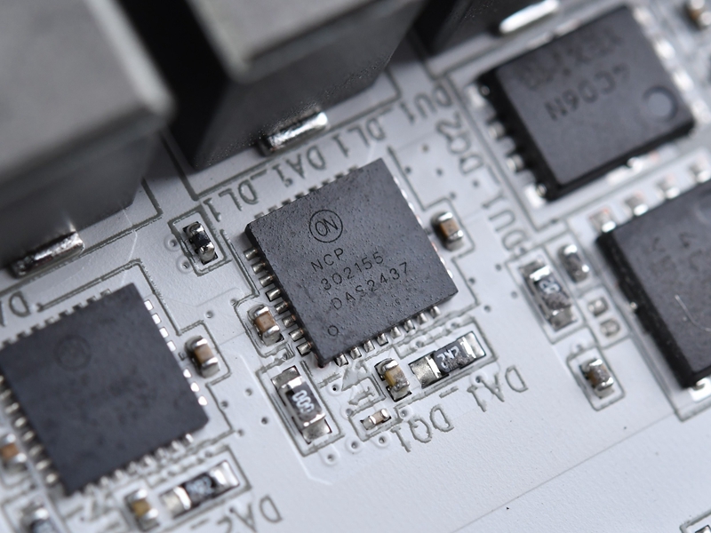 下面来看一下这款主板的供电模组,技嘉 B650E 冰雕背插版主板用料给的很足,这次提供12+2+2相供电设计,PWM控制器型号为RT3678BE,核心12相供电采用Dr.Mos设计,型号为NCP302155,支持60A电流,这套供电模组应对目前主流的锐龙7000/锐龙9000处理器是完全没有问题的,加上这两代锐龙也没什么超频空间,甚至PBO都不太用开,默频使用即可发挥出大部分性能表现。