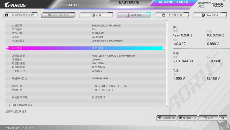 接下来就是信息界面,这俩底部包含EASY MODE的Q-Flash功能,就是BIOS升级启动项。