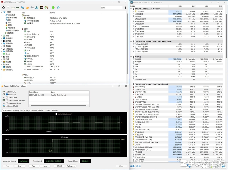 接下来我们开始拷机测试,AMD这两代处理器温度控制的都还不错,只要板厂给的设置没有那么激进,都不会遇到什么功耗温度压力。