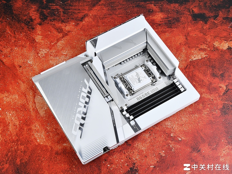 作为冰雕系列中的一员,技嘉 B650E 冰雕背插版主板采用了纯白配色,目前这也是首款纯白的背插主板,对于想要打造背插平台雪景房的用户,几乎是唯一选择。背插主板特色是除了PCIe插槽核内存插槽外他插槽都放到了背面,所以技嘉 B650E 冰雕背插版主板正面突出一个简约整洁,加上纯白风格让其颜值又上了一个台阶。