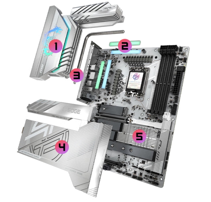 对于海景房玩家来说,有着超高颜值的微星 X870E EDGE TI WIFI刀锋钛主板更搭配,采用标准的ATX架构,白色的PCB配备银白色的散热装甲,给人一种优雅的科技感,仿佛是从科幻世界中穿越而来,成为打造白色主题 PC 的绝佳选择。