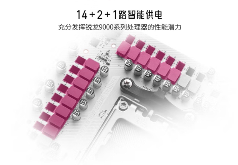 值得一提的是,微星 X870E EDGE TI WIFI刀锋钛采用了2Oz 铜箔的 8 层服务器级 PCB,具备更出色的电气性能、抗热指数以及抗弯折性能。14+2+1豪华相供电设计和第三代钛金电感,充分发挥AMD锐龙9000系列处理器的性能潜力。
