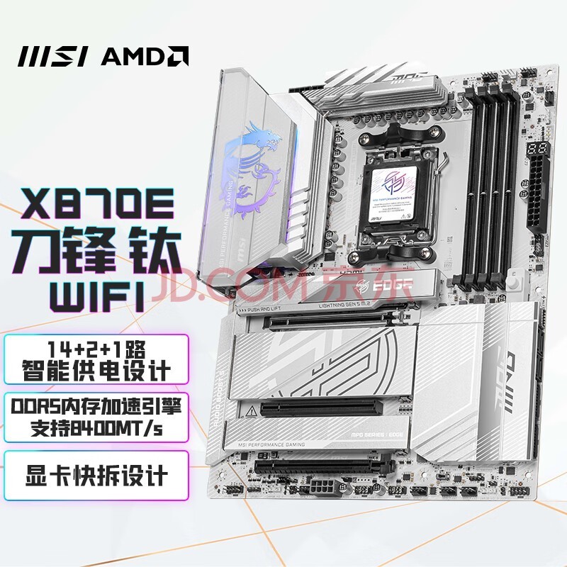 作为新一代高端AMD平台,微星 X870E EDGE TI WIFI刀锋钛采用X870芯片组,搭载AM5接口,支持最新的AMD锐龙9000系列处理器,包括游戏神U 锐龙9 9900X3D/9950X3D和锐龙7 9800X3D,也向下兼容锐龙7000系列处理器。