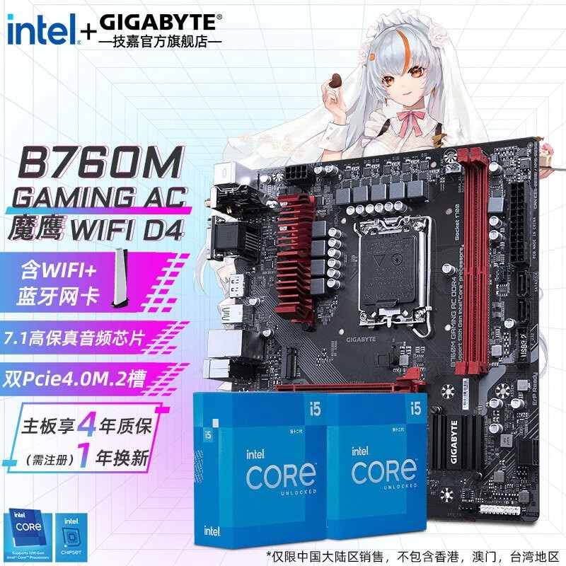 技嘉 B760M GAMING AC D4 英特尔12代 i5 12600KF/12400F/12490F 搭 B760M 小雕/魔鹰WiFi 主板CPU套装 魔鹰WiFi 单主板