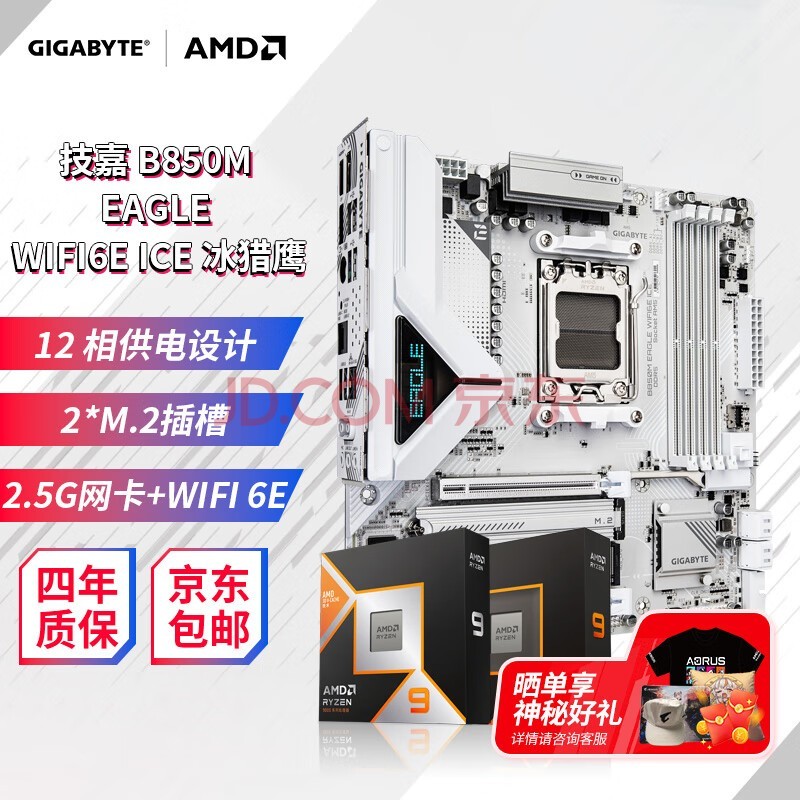 技嘉B850 电竞雕冰雕大板 主板搭AMD 锐龙7000/9000系列 散片盒装 9700X/9800X3D 主板CPU套装 板U套装 技嘉 B850M 冰猎鹰 WIFI AMD 锐龙7 9800X3