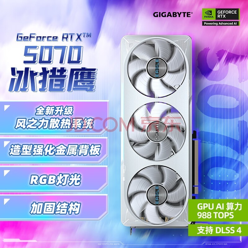 技嘉(GIGABYTE)5070显卡 冰猎鹰 GeForce RTX 5070 Eagle OC ICE SFF 12G DLSS4 电竞游戏AI智能学习电脑显卡