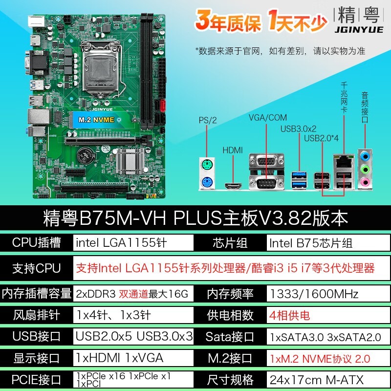 精粤 B75M-VH主板电脑台式机全新主板1155针DDR3内存酷睿2/3代i5 3470/i7 3770/E3 1230V2 精粤B75M-VH PLUS主板