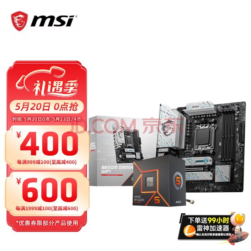 AMD今年在游戏领域的表现可圈可点,尤其是多款游戏神U的发布,更是让不少玩家将目光都投降了锐龙系列处理器。随着时间进入到5月中旬,一年一度的618年中大促也逐渐拉开了帷幕。作为一年中最好的硬件升级时机,相信不少玩家们都已经摩拳擦掌。硬件品牌微星,也在近期开始了618促销活动,今天我们就为大家带来一款极具性价比的板U套装,微星 B650M GAMING PLUS WIFI+AMD R5 9600X散片的套装组合。