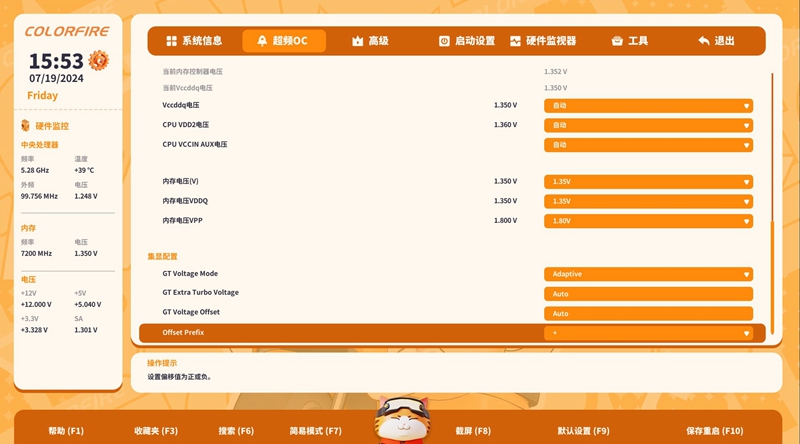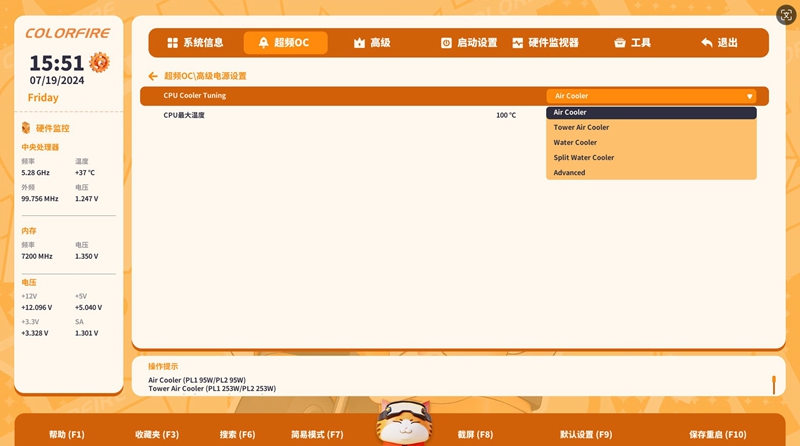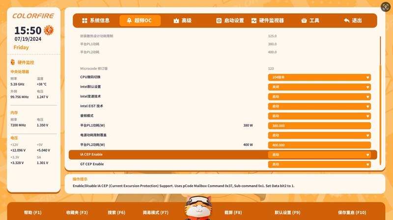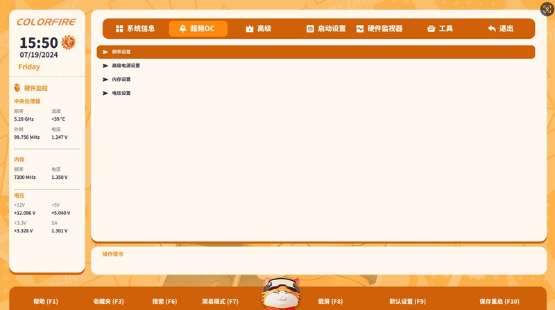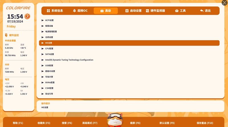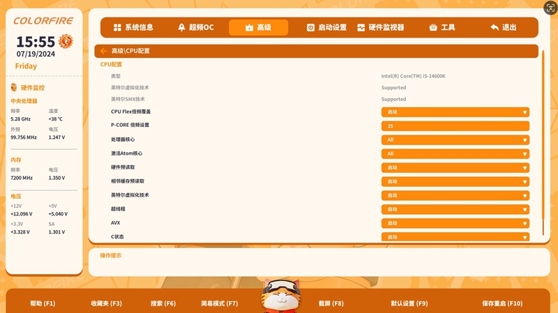作为主板外在的用料表现优秀,七彩虹 B760M-MEOW WIFI D5橘影橙主板这次提升最大的地方还不在用料上,而是我们开头提到的BIOS,下面咱们一起来看一下这款主板全新升级的BIOS界面和一些增加的功能。