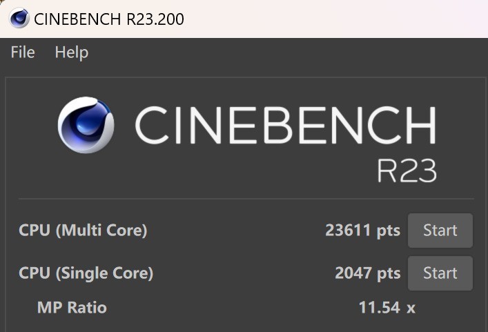 虽然开启104微码后酷睿i5-14600K的功耗和温度都降低了,但很多小伙伴比较担心这样性能会不会有损失,我们也用CINEBENCH R23进行了测试对比。