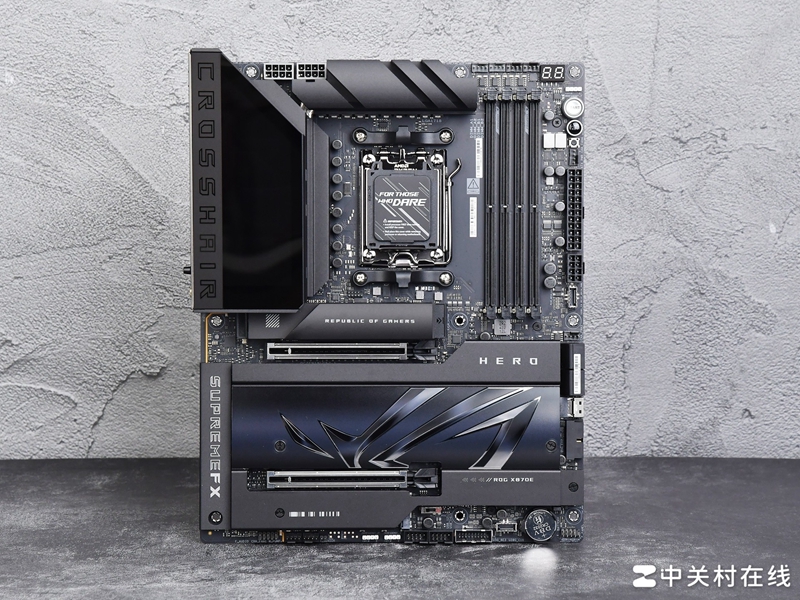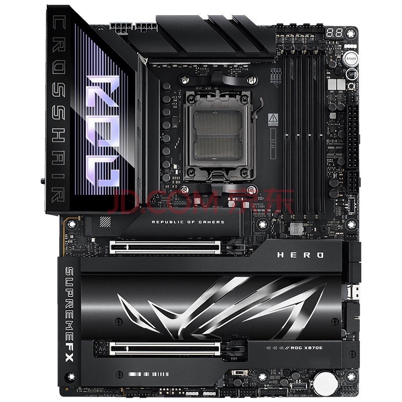 华硕 X870E HERO主板搭载了AM5插槽,AMD此前承诺AM5平台会延续到2027年,所以这款主板理论上可以到2027年之前发布的所有AM5处理器,当然也包括上月发布的锐龙9000和之前的锐龙7000以及锐龙8000G系列。